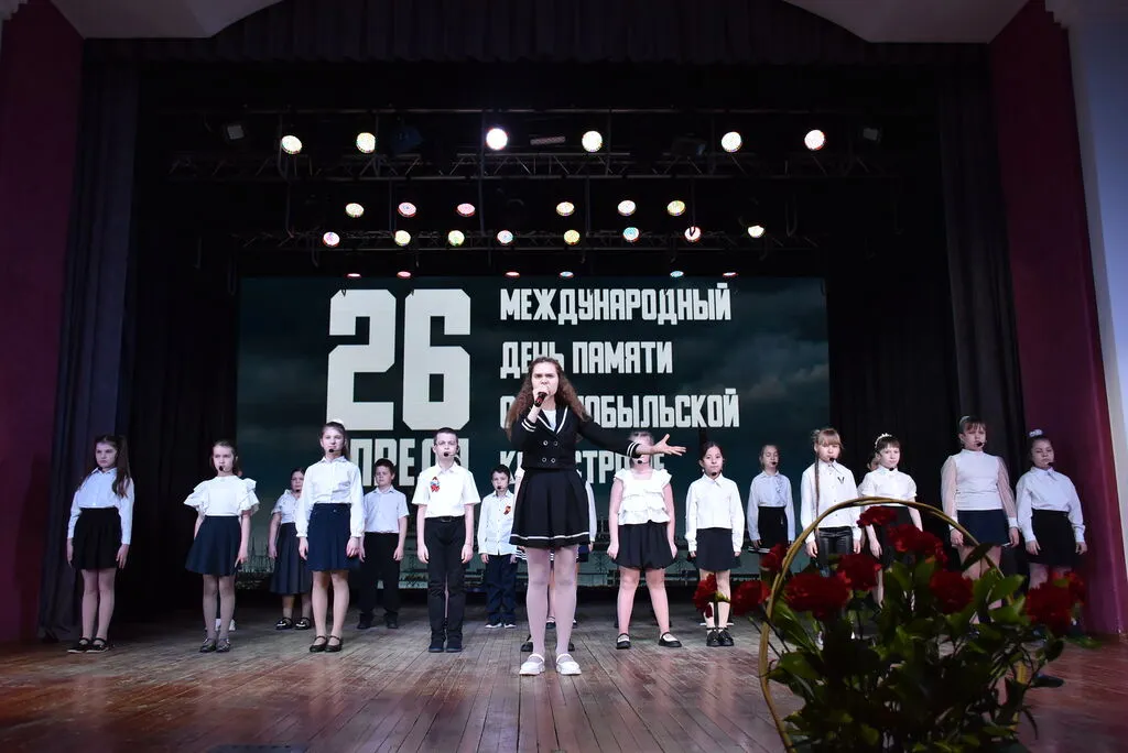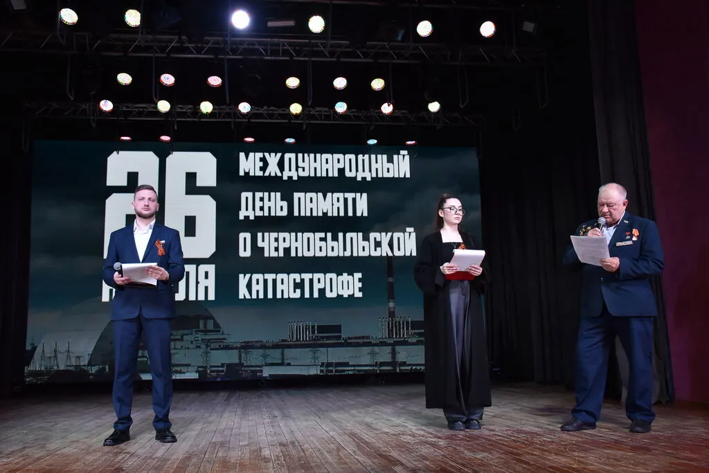 Ведущие, Юлия Коваленко и Виктор Бондарев, провели собравшихся через годы, рассказав о масштабах и причинах аварии, о ее разрушительном влиянии тогда и о том, как эти последствия ощущаются спустя четыре десятилетия.